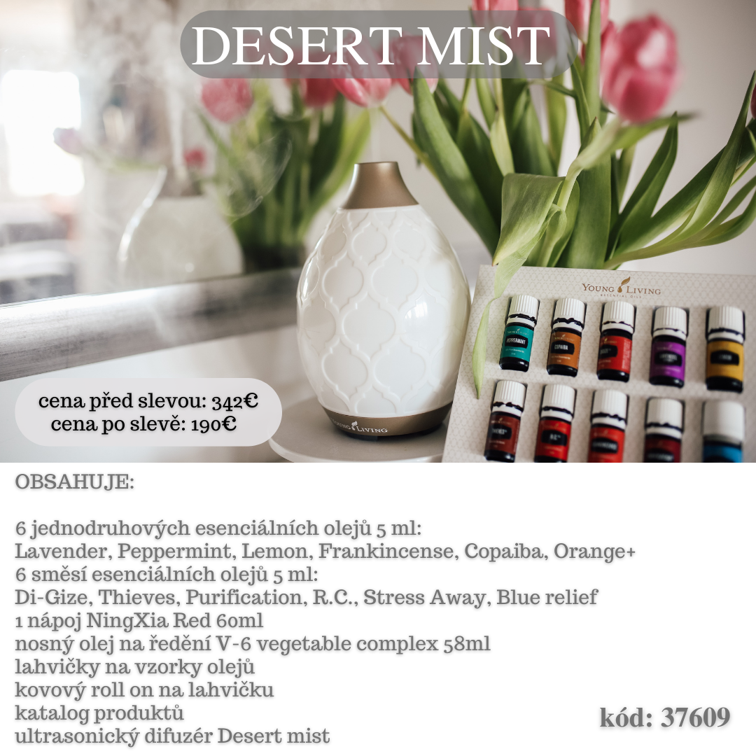 Difuzér DESERT MIST, který je z kvalitních tvrzených plastů. Nabízí několik režimů mlhy a 11 možností LED osvětlení, včetně stylu plápolající svíčky. Tento difuzér dokáže pokrýt plochu prostoru do 30 m2.